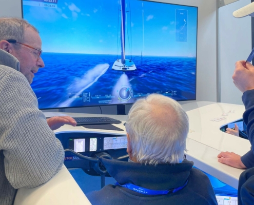Som ett första steg reste Skota Hems grundare Claes Hultling till Metstrade i Amsterdam där DutchSail hade sin AC40-simulator på plats. Med lite hjälp kom Claes ner i cockpit och insåg snart; visst är det möjligt! Han fick återuppleva den berusande känslan som första gången han satte sig i en 2.4 och seglade på egen hand igen för drygt 40 år sedan.